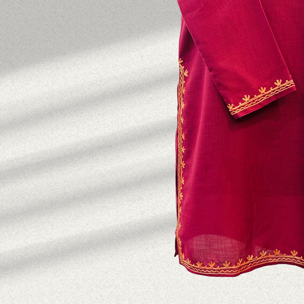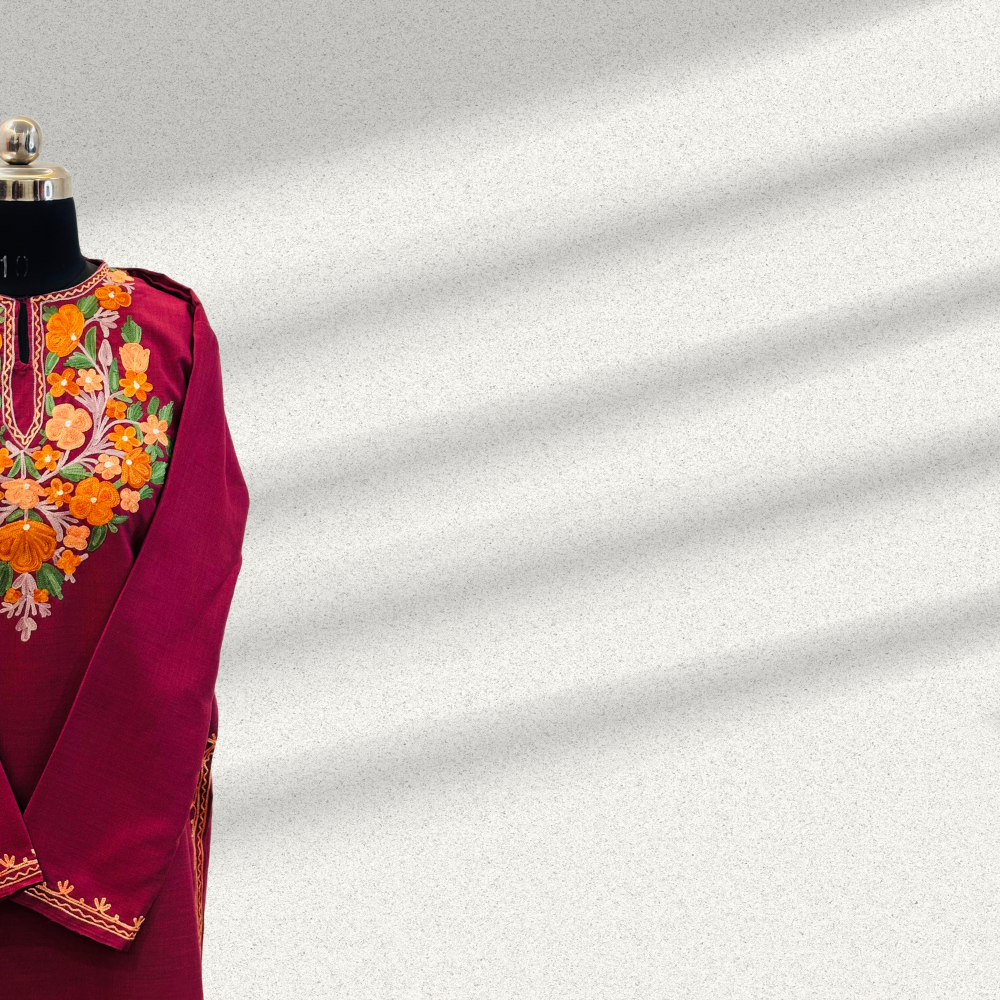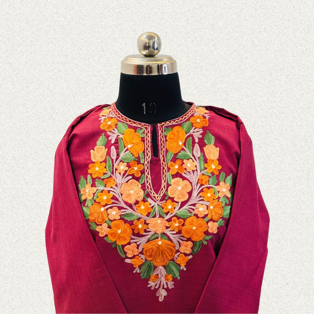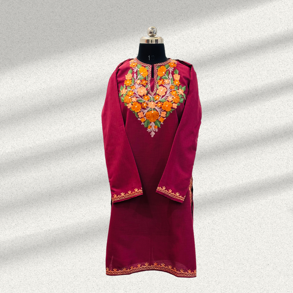 Kashmiri Aari Full Neck Embroidery Maroon Kurti