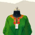Kashmiri Aari Half Neck and Bottom Embroidery Green Kurti
