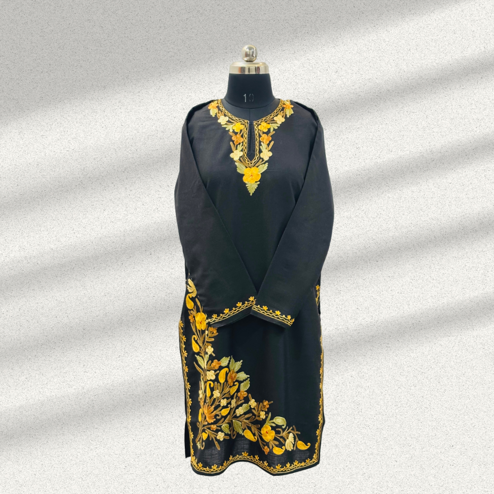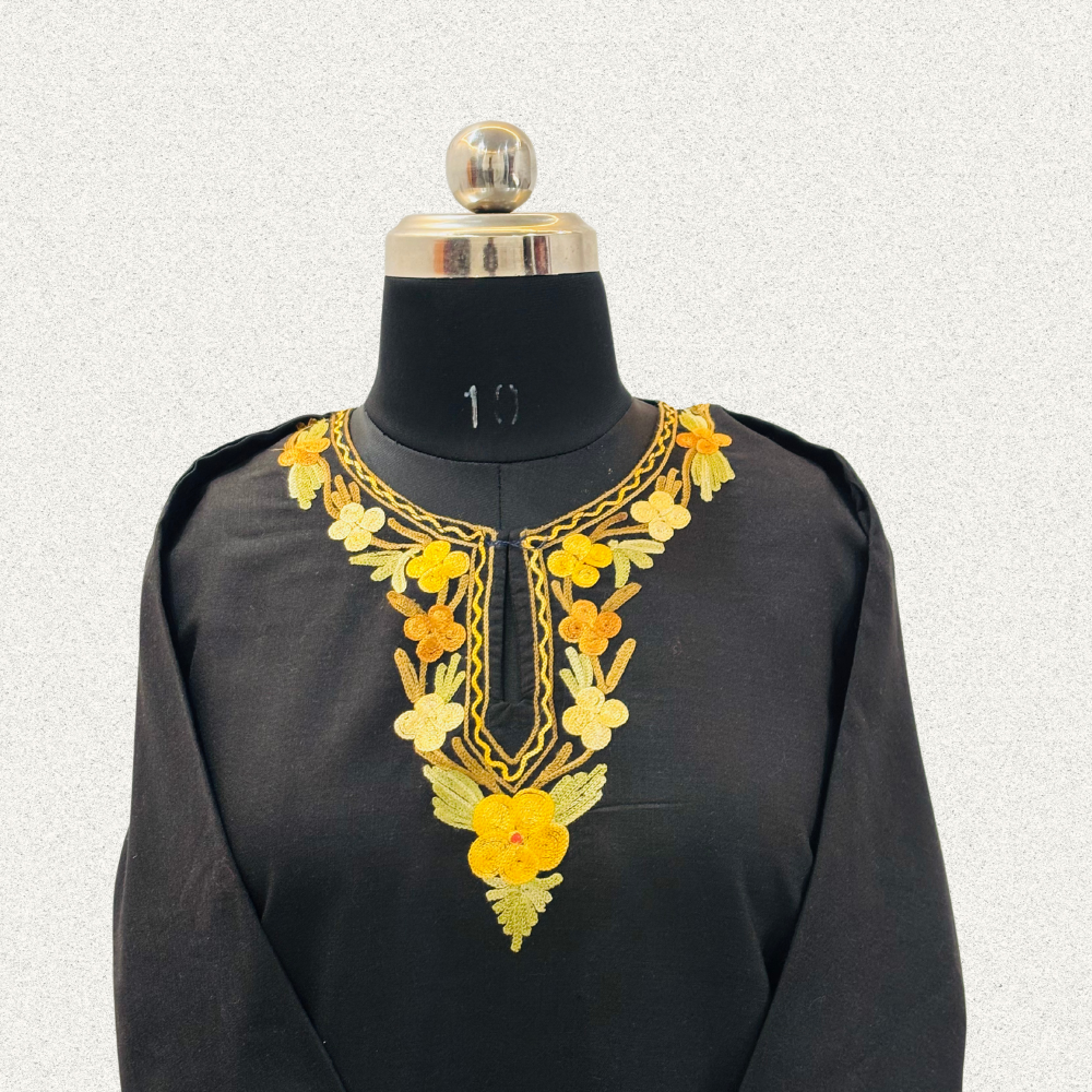 Kashmiri Aari Half Neck Embroidery Black Kurti